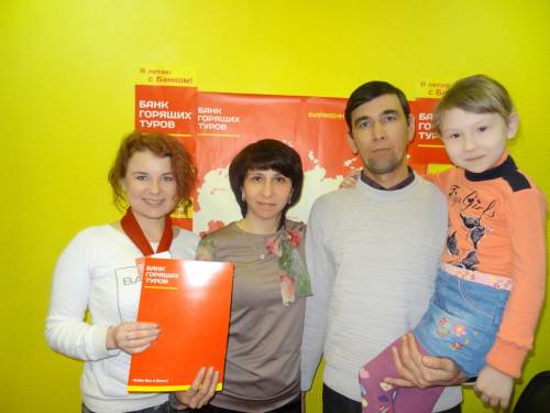 Впервые обратились в "Банк горящих туров" по рекомендации знакомых .Сайтом пользоваться не пробовали, сервис в офисе понравился.Ждем от "Банка горящих туров" побольше скидок)