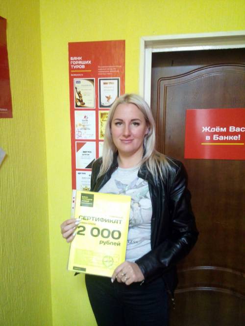 На протяжении десяти лет обращаюсь только в Банк Горящих Туров! Благодаря давнему знакомству, приятным ценам и честному выбору, услугам и т.д. обращаюсь в «Банк» вновь и вновь. Полностью удовлетворена сервисом в офисе продаж, удобный официальный сайт. Желаю Компании1